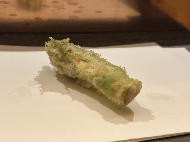 お料理は油を全く意識させない、胃もたれしない天ぷらで、衣も軽くて食べやすかった. 素材の味もしっかりとちょうどよい揚げ加減で全てが素晴らしいです. 特に姫小鯛、ホタテ磯部、ホワイトアスパラ、椎茸良い食材を使う、火入れ完璧だ!