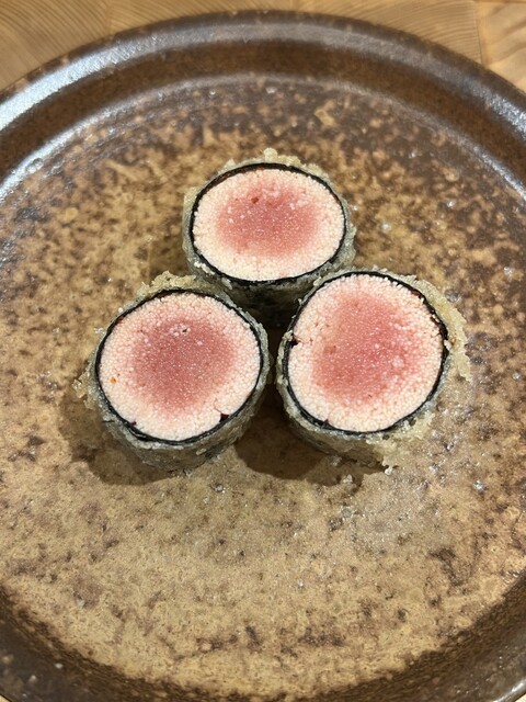 今回の料理,どの天ぷらも素材と衣の味が一体となって 最高に美味しかった. 火入れ、コース構成のバランス、相変わらず力強い天ぷらで大満足でした. (明太子海苔巻きとライス,これは毎日食べたい)