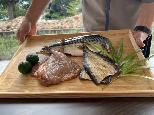 ⑨本日の干物3品:鯖塩干し、鰯醤油干し、ふぐ醤油干し