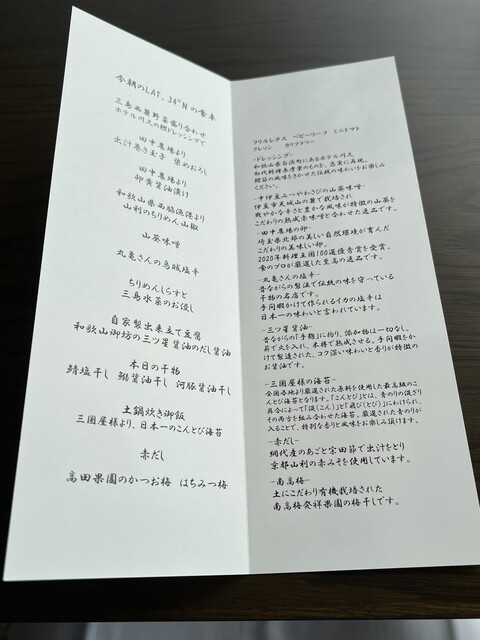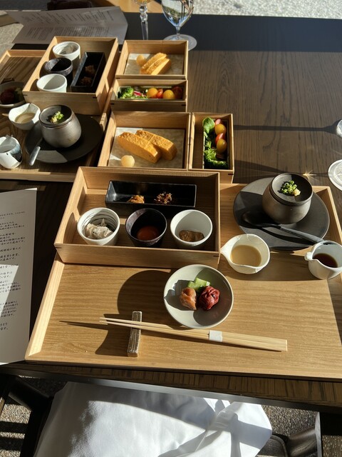④夜はガストロノミー体験を提供する「LAT.34°N by 蒼」. 朝食はこだわり食材色々満足感のあるお料理.