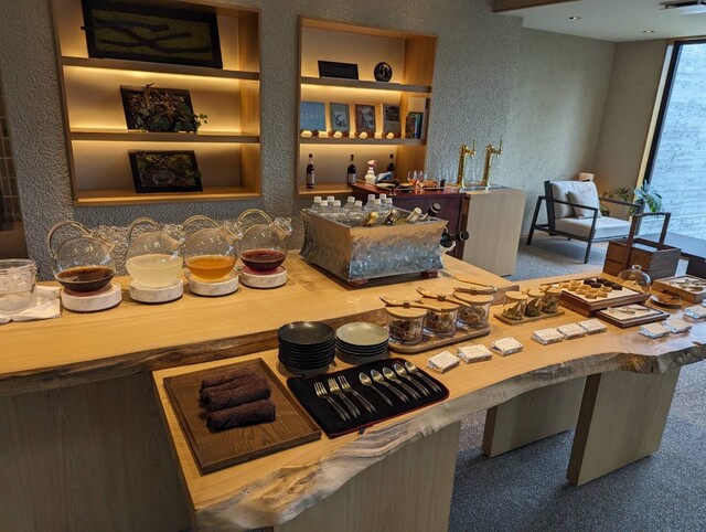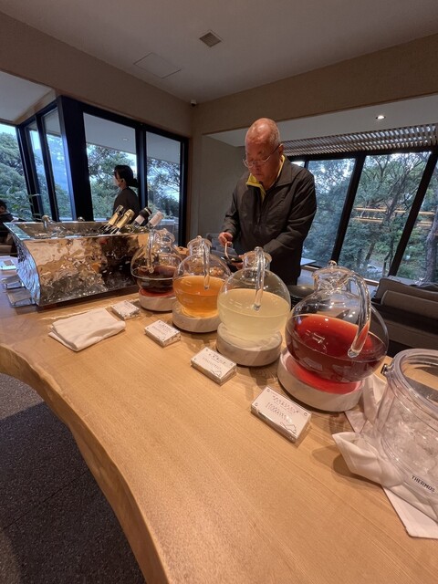 ③ ウエルカムドリンクは、専用ラウンジでワイン、特製ジュース、ビール、おつまみ等をセルフサービスで楽しめる形式になっている. 全てにおいてこだわりやおもてなし素晴らしいです.