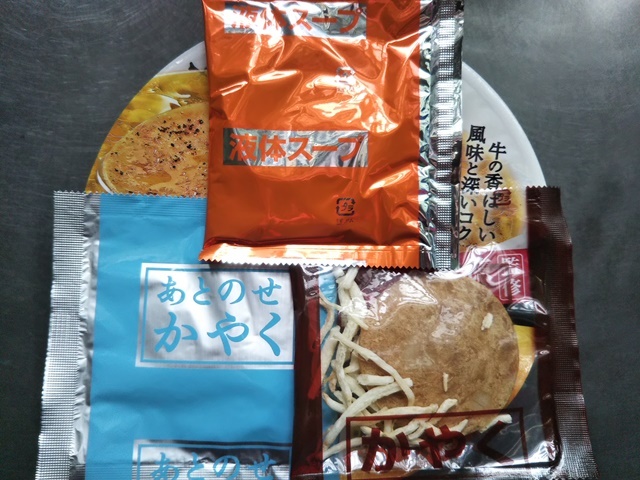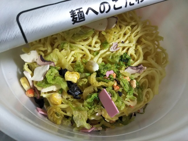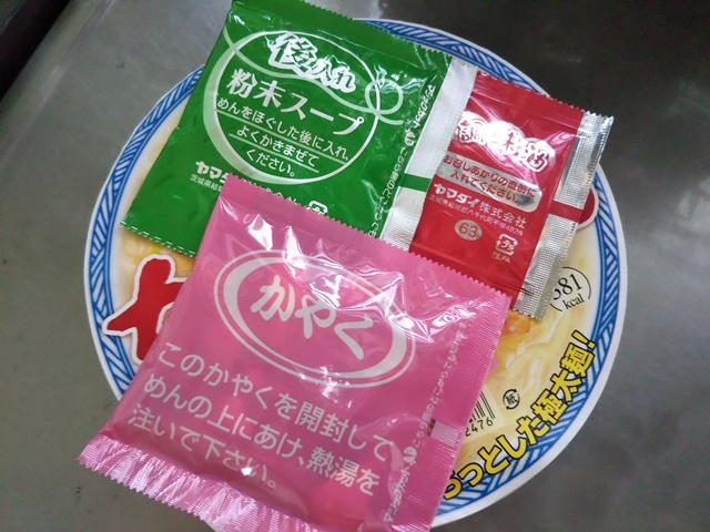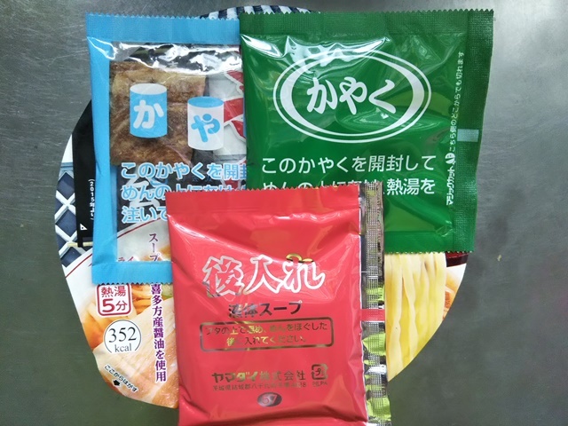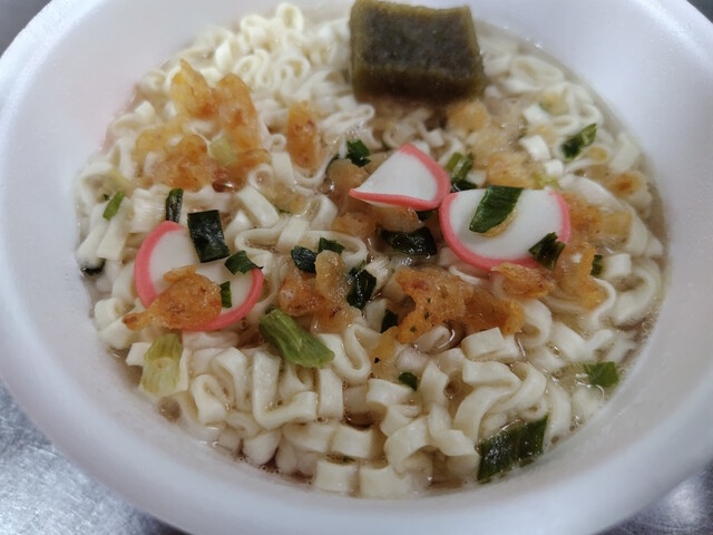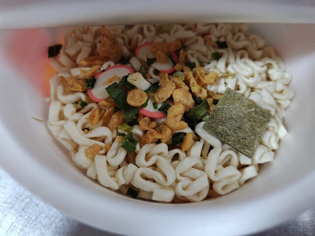 かやくはかす入り揚げ玉ととろろ昆布、かまぼこ入り