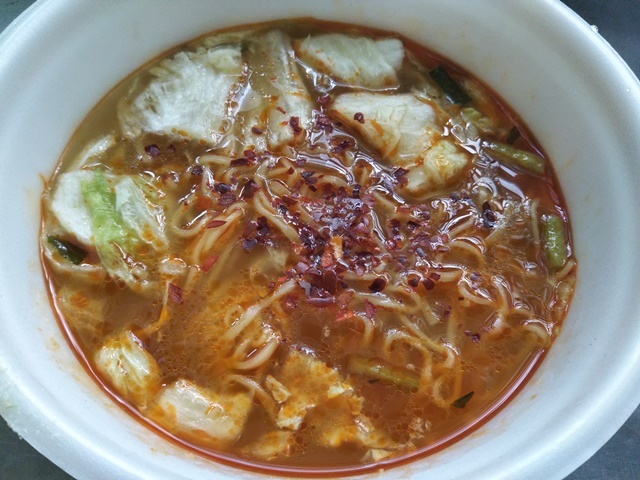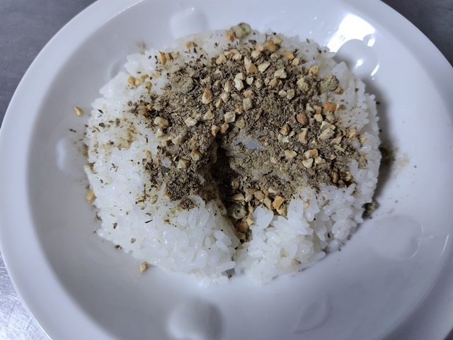 粉末スープと調味油の順で投入し混ぜ混ぜ