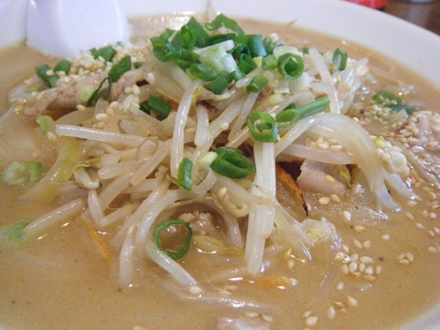 5分ほどで運ばれてきたのを見ると・・千切り野菜がたくさん乗っており、スープはまろやかさがわかる茶系クリーム色。豚肉、もやし、にんじん、たまねぎ、小ネギ、木耳、そしてゴマが振りかけています。キャベツは入っていない模様。早速一口・・麺は極わずかに縮れた細い麺。モチッとした食感はなくインスタント麺に近い感じ。スープは・・味噌が主張していません。ちゃんぽんと同じく野菜の旨みが感じられるまろやかな味。こってりとした強い味つけのラーメンが好きな方には物足りないだろうと思います。私は味的には好きですが食感に変化がないところは少し飽きが来るかなと思いました。チャーシューのようなトッピングでもあればというところでしょうか。値段的にも”ちゃんぽん”や”皿うどん"より50円高いのでまた食べるかというと悩んでしまいますね。次は”皿うどん細麺"で全メニュー制覇だぁ~!ご馳走様でした!!