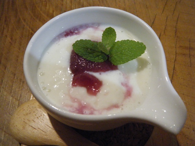 5分ちょっとで運ばれてきたのはスパイシーな香りのする”焼きカレー”。表面はチーズを纏ったチキンカレールーに鶏肉がちりばめられています。早速一口・・チーズの下には刻んだトマトが敷かれている模様。"特辛"にしただけあってこれまで食べた他のメニューより数倍辛いですがまだまだ余裕の辛さです。ご飯を100g増量したおかげでこれまでの少し足りないという感じがなくなりお腹にたまりました。食後に運ばれてきたのはヨーグルトシャーベット。熊本・小国ジャージー乳を使った手作りヨーグルトをシャーベット状にしておりシャリシャリとした食感。オリゴ糖を使って甘さ控えめとのことで程よい酸味がありとても美味しかったです。また別のメニューを食べるべく訪問したいと思います。ご馳走様でした!!