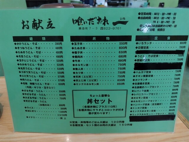 2人掛けテーブル席につき早速メニューを拝読・・年末という事もあって日替わり定食はないとの事でしたが、自分の目当てはブログを見て決まっていました。そのメニューとは・・"ホルモン定食“です。