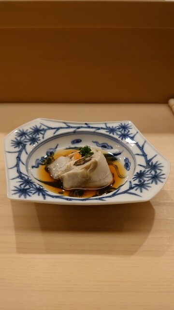 肝を身で巻いて食しましたが、肝のコクと身の旨味が合わさり、いつまでも余韻に浸かりたかったです。