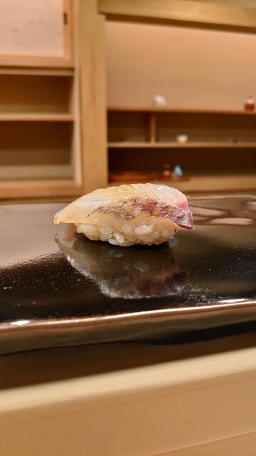 鰆 背:背の皮は厚いので削ぎ、藁で軽く燻し漬けに。この日の白眉