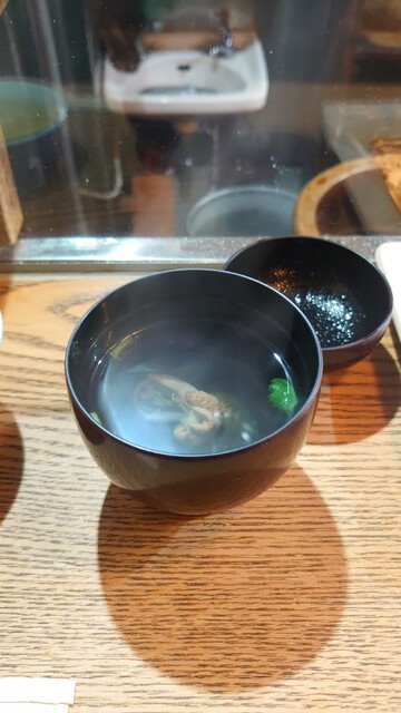 肝吸い:削り立ての鰹節。熱々を飲みながら一息つきました。
