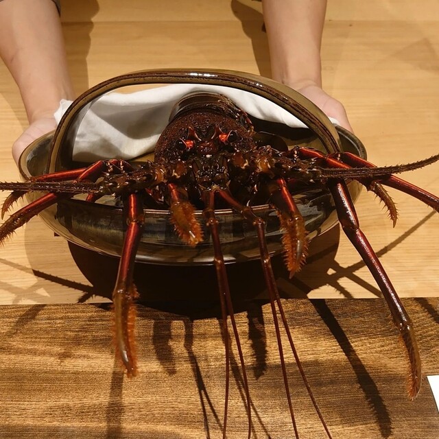特大のアカザエビを杉山乃互氏の絶妙のレアな焼き。