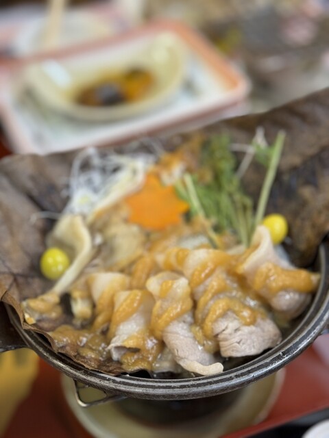 主菜:麓山高原豚朴葉家喜 バター味噌