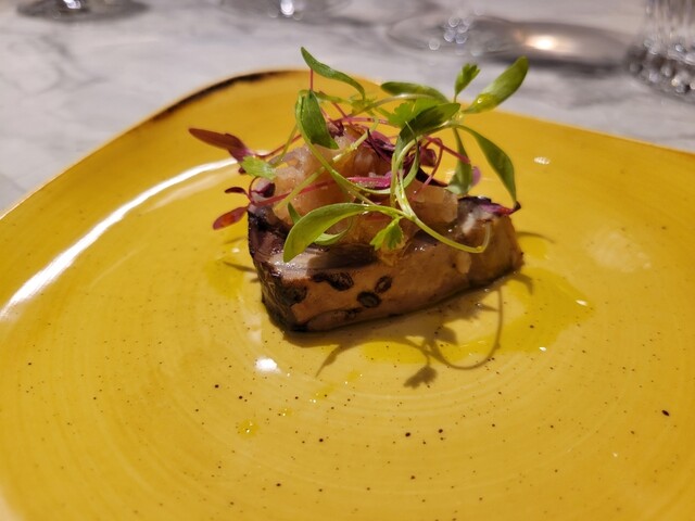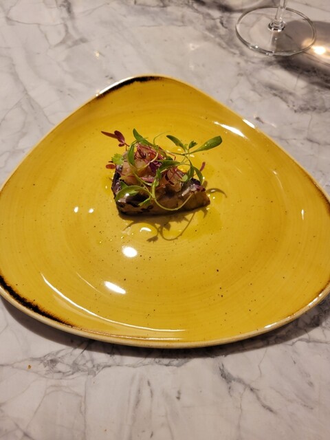 柔らかな稚鮎の身に内臓の苦味がサクッと揚げられていて、蓼とライムのソースが爽やかにまとめてくれます( ´∀`)b