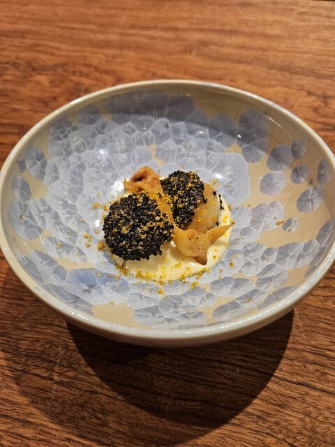 甘味の少ないマヨネーズソースにカラスミと柚子の香り~美味しいのでソースを最後まで堪能しました!!