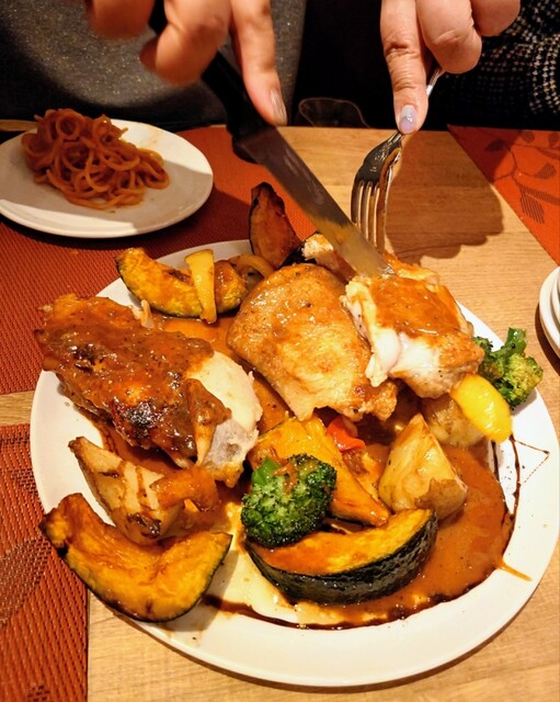 「チキングリル」は、ボリューム満点のジューシーで柔らかいチキンを、たっぷりのグリル野菜といっしょに食べられるのが嬉しい。