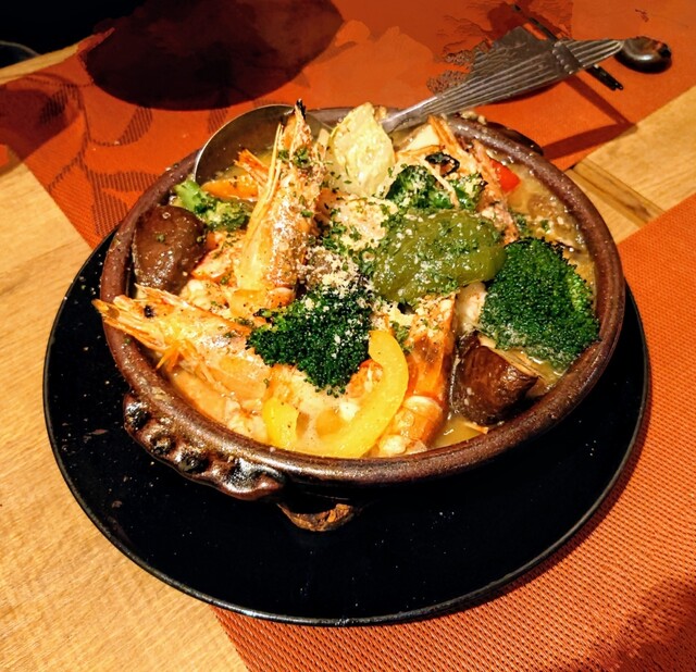 「日替わり海鮮と野菜のガーリックオイル煮」①