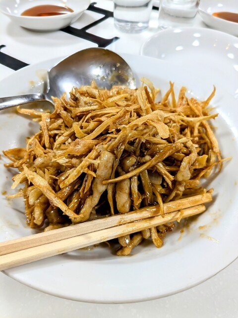 細く切ったごぼうは水分少なく、パリパリっとしていて、お肉は柔らかく、味はしっかり。