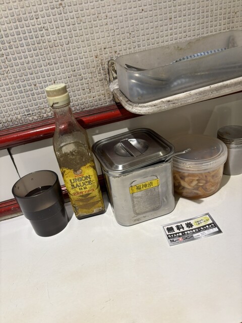 今回は、無料の福神漬けを多めにして、辛みスパイスも振りかけました。