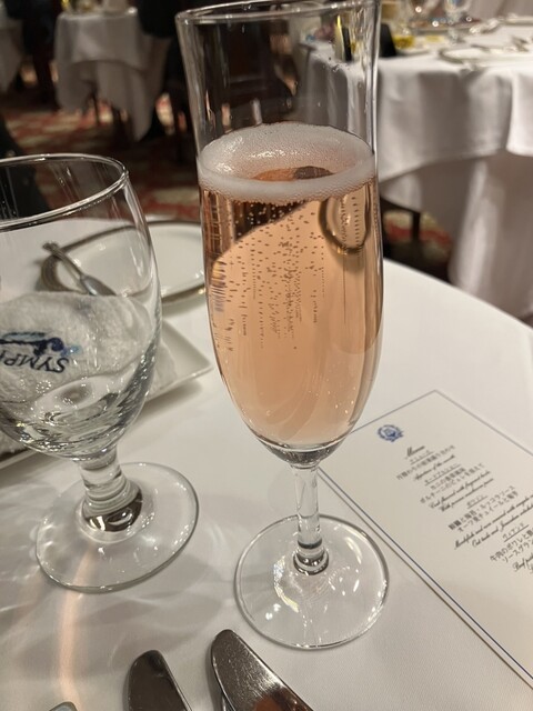 日の出埠頭からの出発です。奥には芝公園その先はスカイツリーを希望反対側は台場とレインボーブリッジと夜景がとても綺麗です。ピアノの生演奏もあり素晴らしいディナーでした。