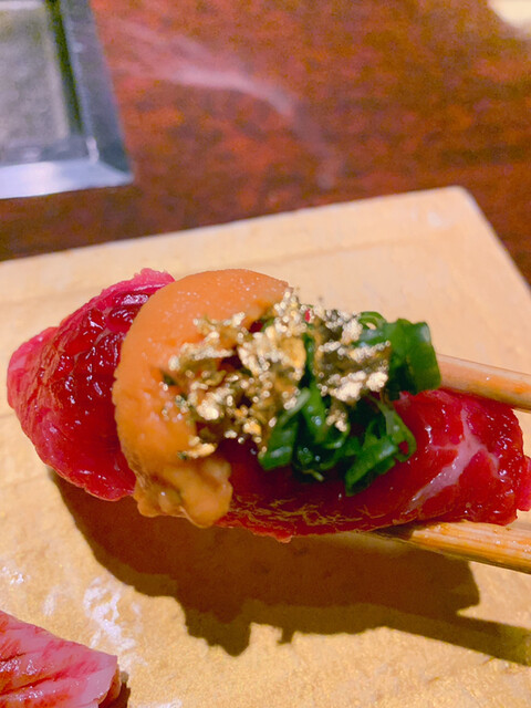 生肉ユッケと同じ部位を使った握りです。