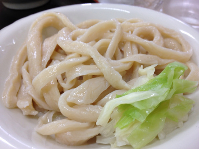 暑い日だったので冷しうどんをチョイス。独特の歯応えのうどんで喉越しも食感も楽しめる美味しいうどんでした。