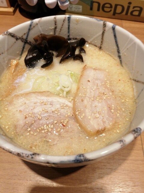 目の前の調理をぼんやり眺めながら先に出来上った塩ラーメンが着丼。いい匂いとキレイな白濁スープにトロ肉の存在感が興奮を抑えきれない。スープはコクがありしょっぱさも無く胃にしみる。麺は縮れ麺でスープがよく絡まる。ネギと大きめのキクラゲも食べごたえあり。