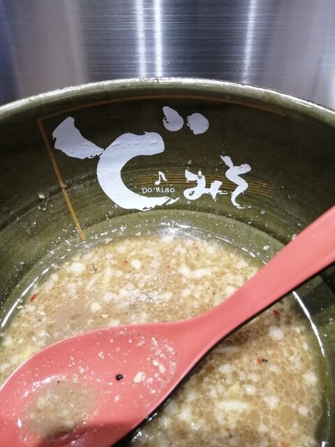 スープに味があるので残ったコーンとともに飲み干すと丼から「どみそ」の文字が出てくる。