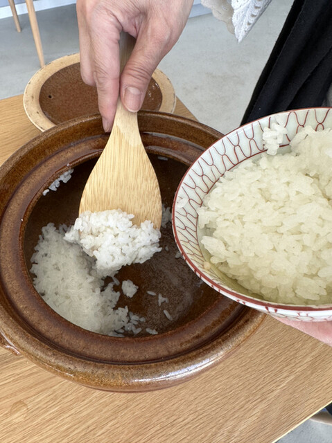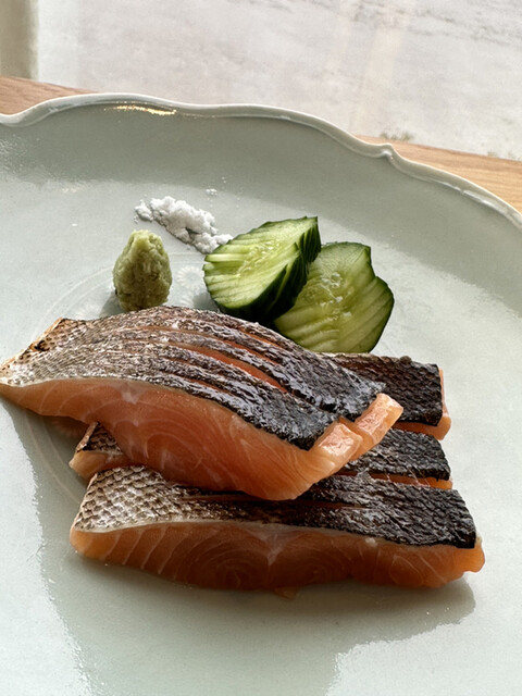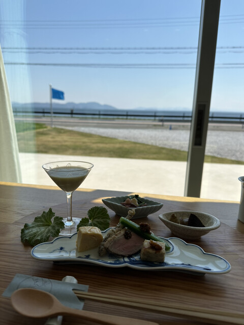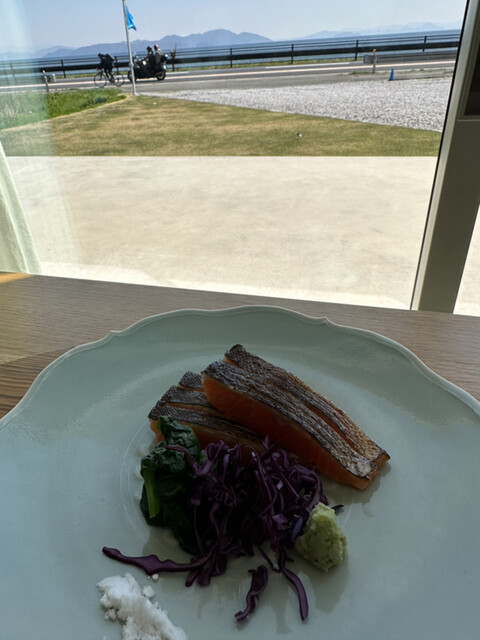 朝食の予約は9時スタートまでです。まず味噌汁が美味しい。ご飯はコゲがありますから土鍋で炊いてあるのでしょう。焼き魚はサワラの西京味噌でした。うまみを引き出した濃いめの味付け。だし巻き卵は出汁を薄味にして卵の味を優先。この日の香の物は塩味が強め。目の前の琵琶湖とともに非日常的な時間を楽しめます。唯一、店内で流れるラジオが・・・