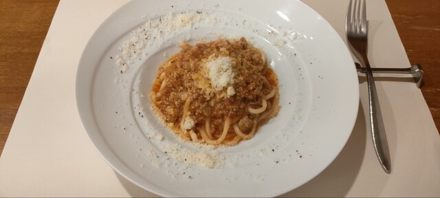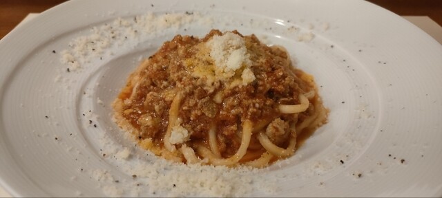 自家製サルシッチャとパルミジャーノチーズのトマトソース ピチは、これまた絶品!ミンチたっぷりのトマトソースと、パルミジャーノチーズのハーモニーが素晴らしい。パスタは中太でコレも絶妙な歯応え。コレだけ美味しいと思うパスタはいつ以来だろうか。