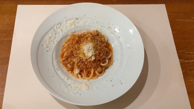 □本日のパスタ(自家製サルシッチャとパルミジャーノチーズのトマトソース ピチ)