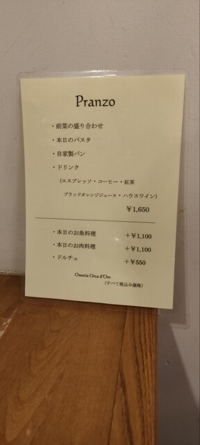 ・ドリンクは、①エスプレッソ、②コーヒー、③紅茶、④ブラッドオレンジジュース、⑤ハウスワイン、からセレクト