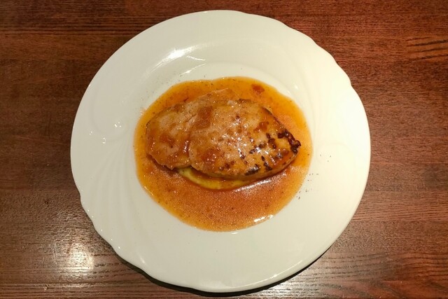 柔らかい厚切り豚肉の下にマッシュポテトが敷かれていて、豚肉とマッシュポテト、ソースを絡めながら食べる。想定を超えるうまさ!