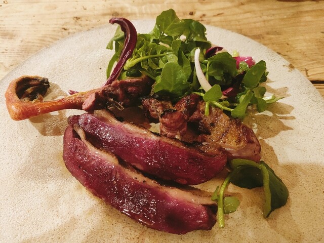 期間限定の鴨と野鳥コースの名残、ジビエ、これから旬を迎える野菜や野草