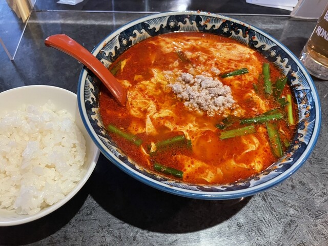 いつもどおり、ごはんにからめんのたまごをのせて、スープを少しかけていただくのが美味。辛さもちょうど良い。旨辛。