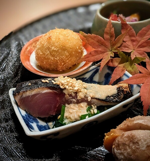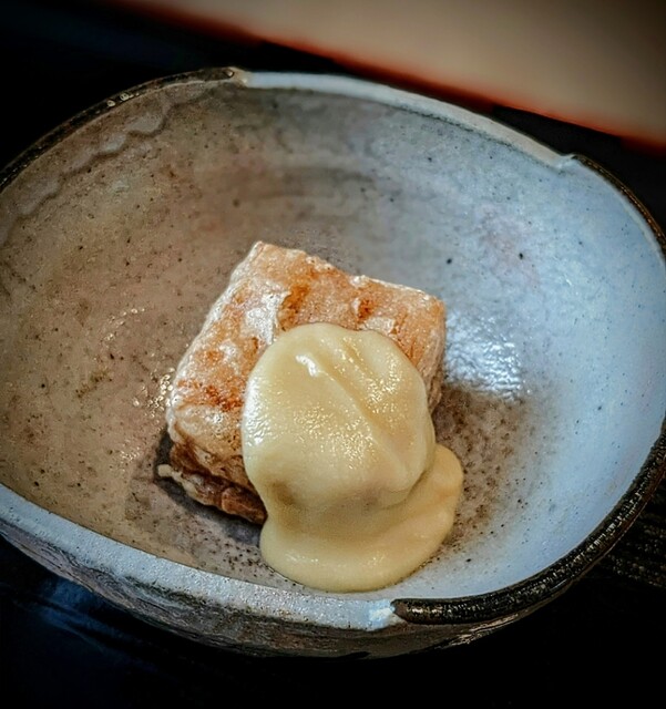 先付けの揚げ豆腐は季節ごとのお楽しみ、