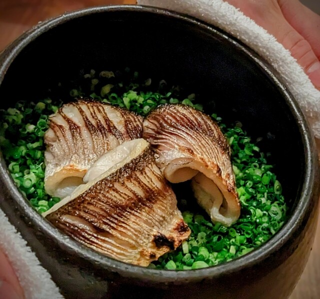 目の前でじっくり焼かれると、身は甘く、香り良く、次に肝の甘ほろ苦さ、いつも本当に見事です♪