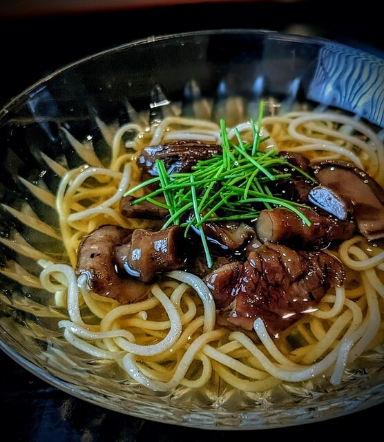 他にも、絶品の冷やし二八蕎麦のトッピングが「黒鮑と黃韮」だったり、