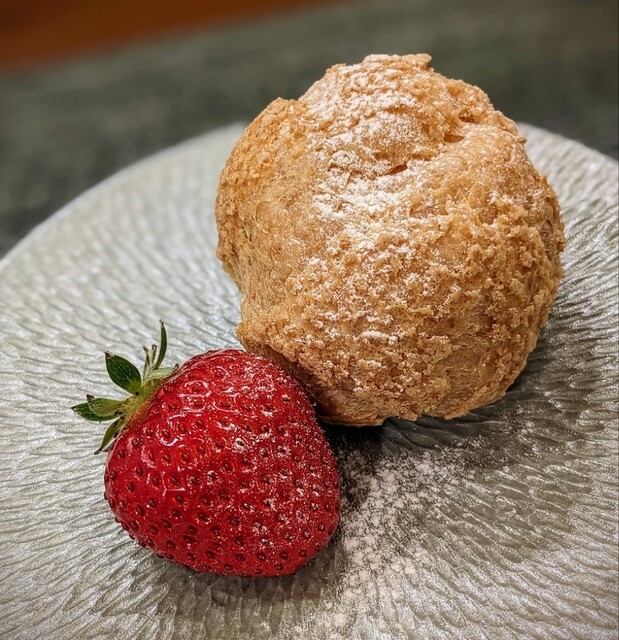 焼きたてのシューに出来たてのカスタードを詰めたシュークリーム。そのあたりで採れた苺がまた絶品。