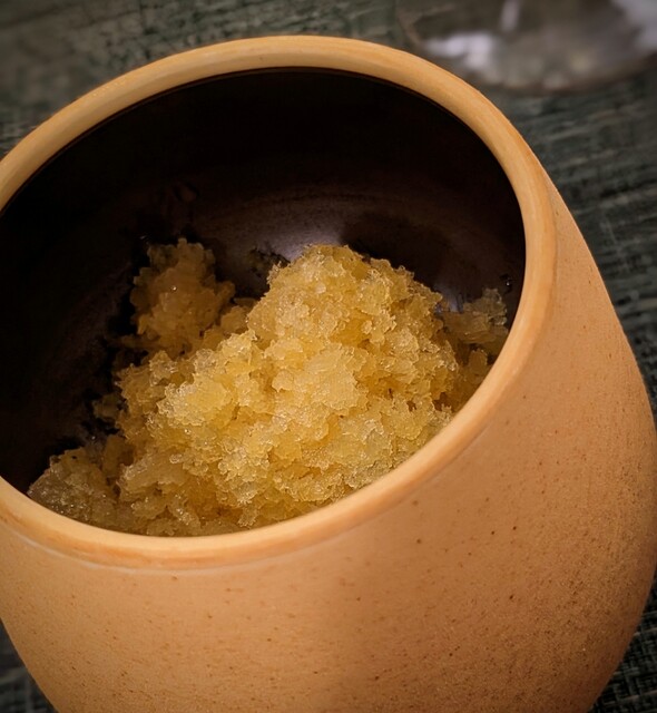 それは、(いつも蒼さんで、鯛や鱧のコンソメを頂いているけれど) 余りにもクリアに凝縮されて、旨み爆弾となって染み渡りました。