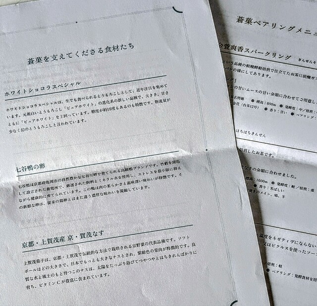 生産者さん、裏方さんを大切にされる峯村シェフらしい説明プリント。これ嬉しいです。