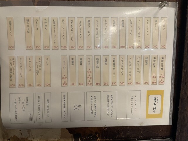 龍朋神楽坂、牛込神楽坂、江戸川橋/中華料理、ラーメン