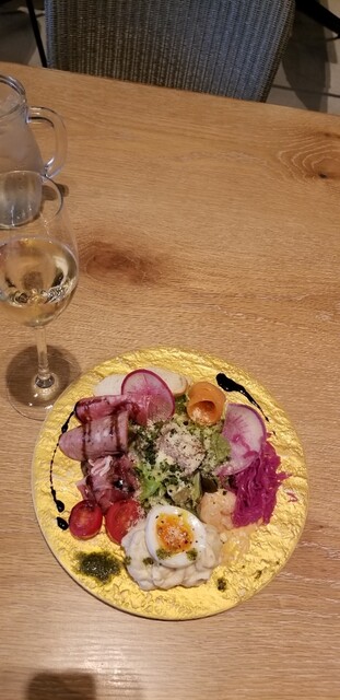 コーヒーというよりワインが飲みたくなってきた。とメニューをみるやいなや飛び込んできたのが、ワイン1杯と前菜で二千円!迷いもせず注文。前菜は山盛り!!これを食べるにはワイン1杯じゃすまないなと、すぐにスマホに手をやり、追加オーダー。素敵なほろ酔いアフタヌーンを過ごしお店の外へ。するとワゴンでジェラートが販売。酔いざましに買ってぶらぶらと梅田へ帰路のとにつきました。