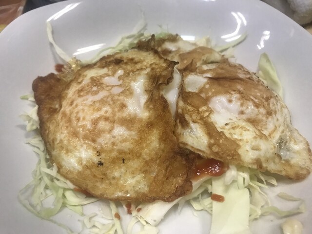 早朝、小田原に向かう途中、相模原青果市場内にある市場食堂「禅」に立ち寄り、朝食です。とんかつと目玉焼きの定食(650円)を注文しました。このボリュームでこの値段はお得です。とんかつ、美味しかったです。