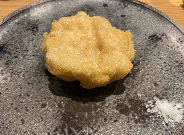 白子のフリットの白子は無洗浄のもの。香り味ともに濃厚