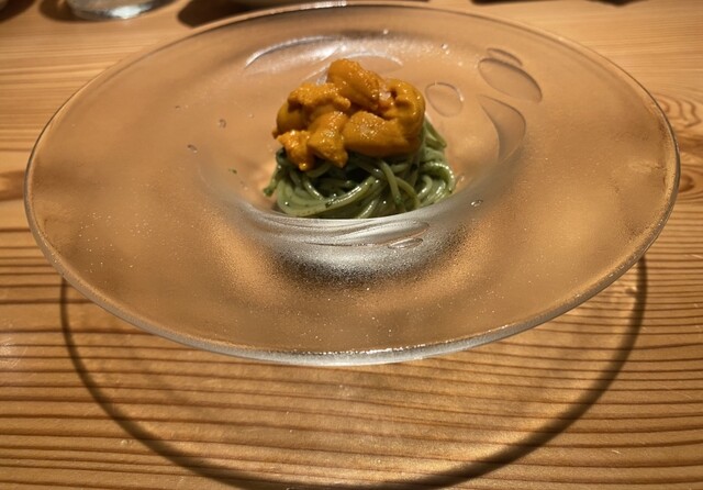 作りたてのバジルソースが香り高く、濃厚で甘い雲丹とのハーモニーに今回も痺れました。