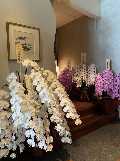 エントランスには、有名な政治家や芸能人、経営者の方から贈られた胡蝶蘭が沢山飾られており美しい。
