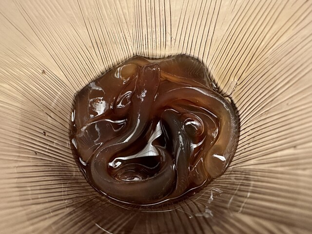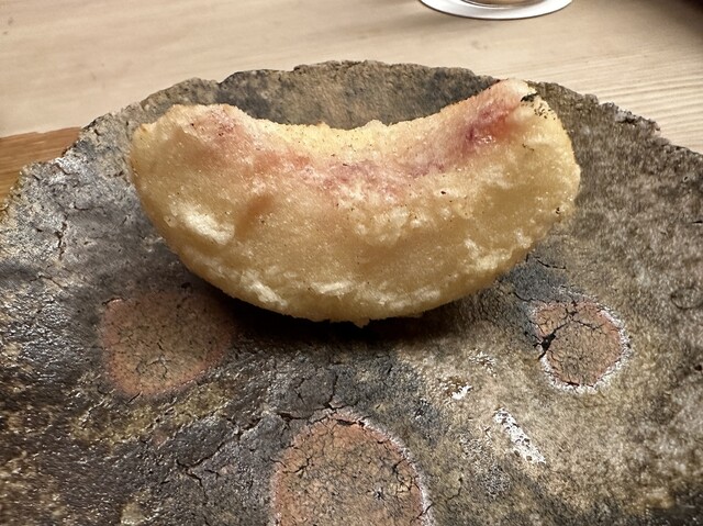 洗い、鱧、鰻と、どれも美味しい魚が続き、桃の天ぷらでリフレッシュします。