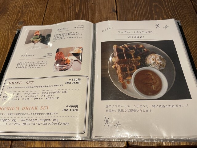モンブランは甘さ控えめで、中のパイはさっくさく、シナモンワッフルも甘さ控えめでサクッとした仕上がりで、とても美味でした♡