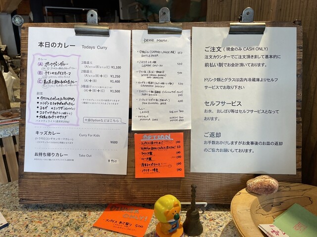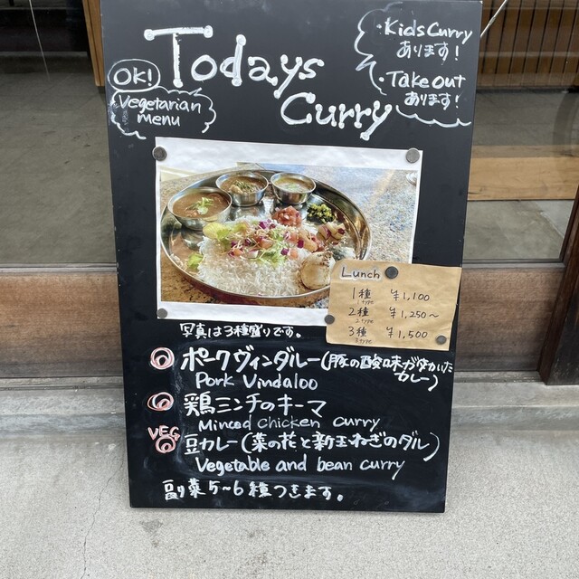 カレーは本日のカレーが3種類あり、3種盛り、2種盛り、1種盛り、から選べます。