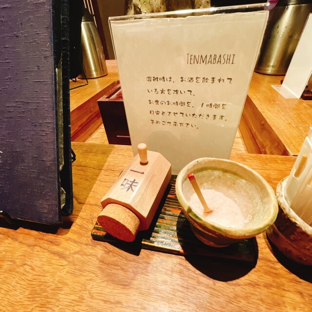 天ぷらは卓上にあるお塩と一味で頂きます。