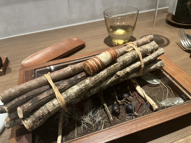 丸太に乗った鹿肉ちゃん。この提供の仕方にもグッときます。。